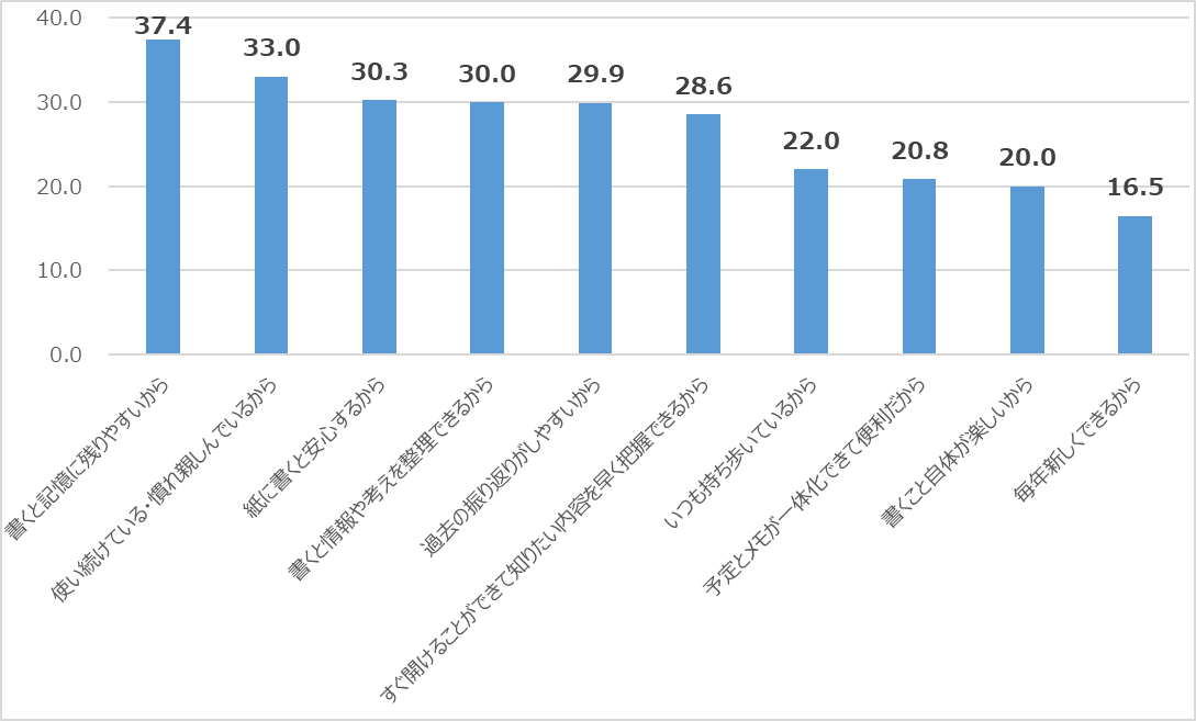 【Topics 3】手帳を使う理由は「書くと記憶に残りやすいから」が第1位に。