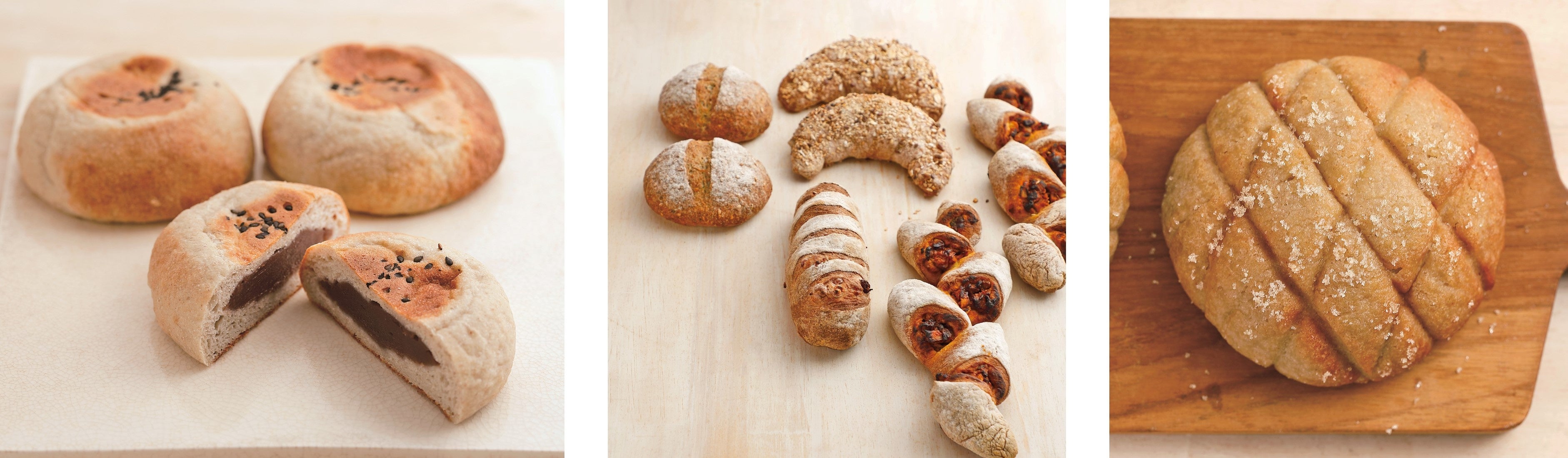 そば湯ミニ食パン/きんぴら惣菜パン/春菊とくるみの総菜パン/テーブルパン/パニーニ/のりとしらすの和風ピザ/フォカッチャプレーン/ローズマリーとガーリックのフォカッチャ/シュトーレン/シナモンロール/甘酒パン/メロンパン/あんパン/バケット/クッペ/カンパーニュ/雑穀パン/カレーエピ/お豆のパン/酒粕パン ほか