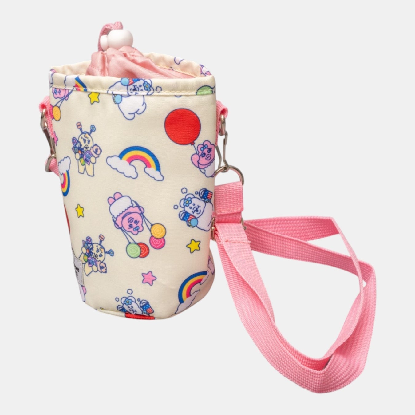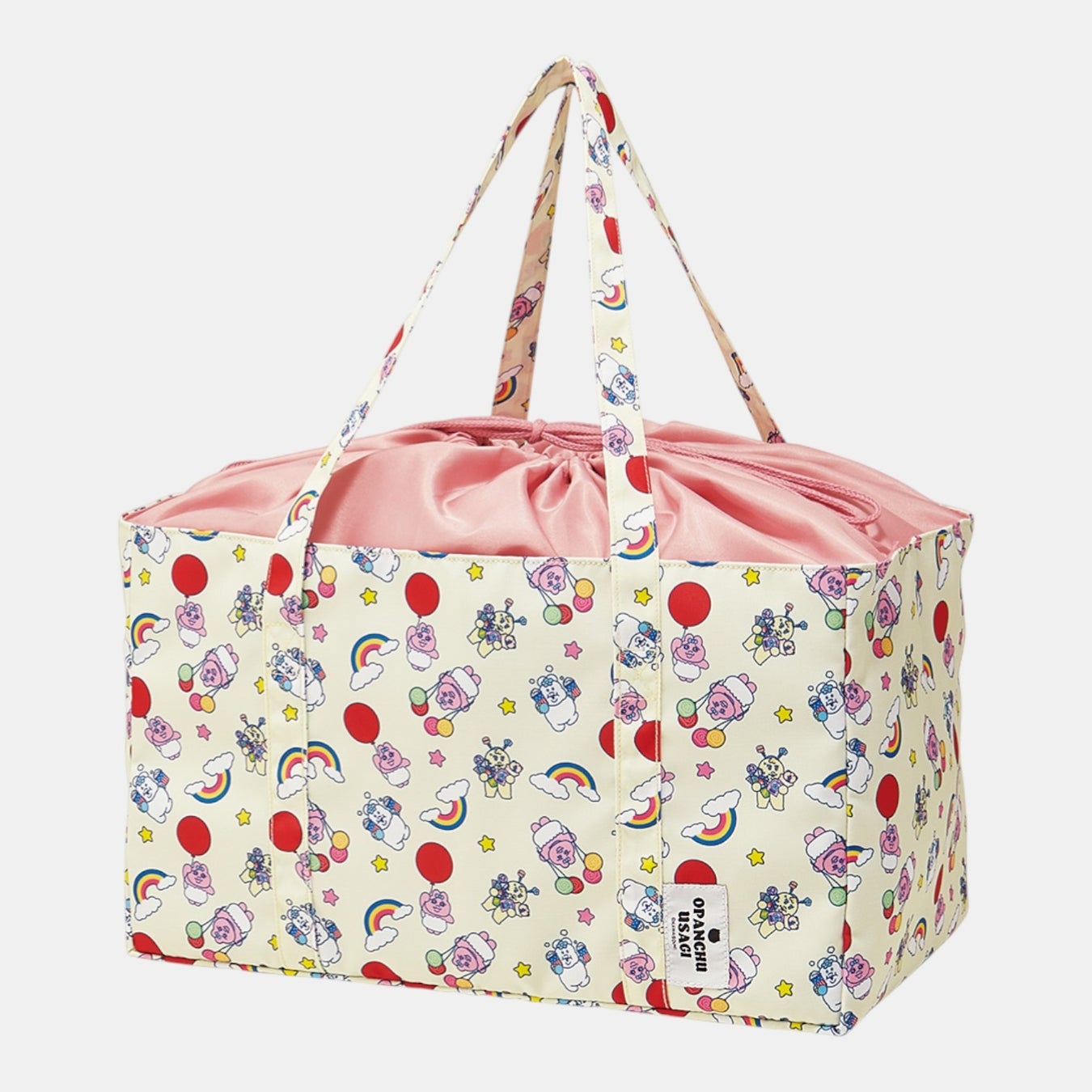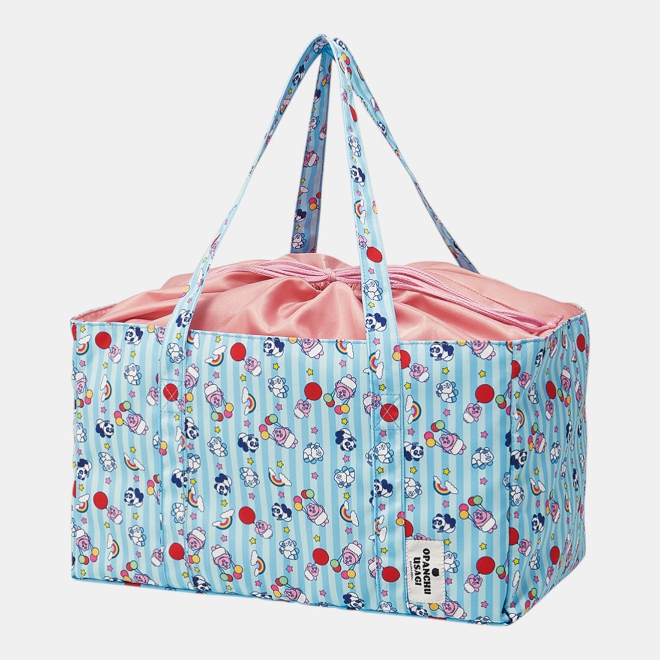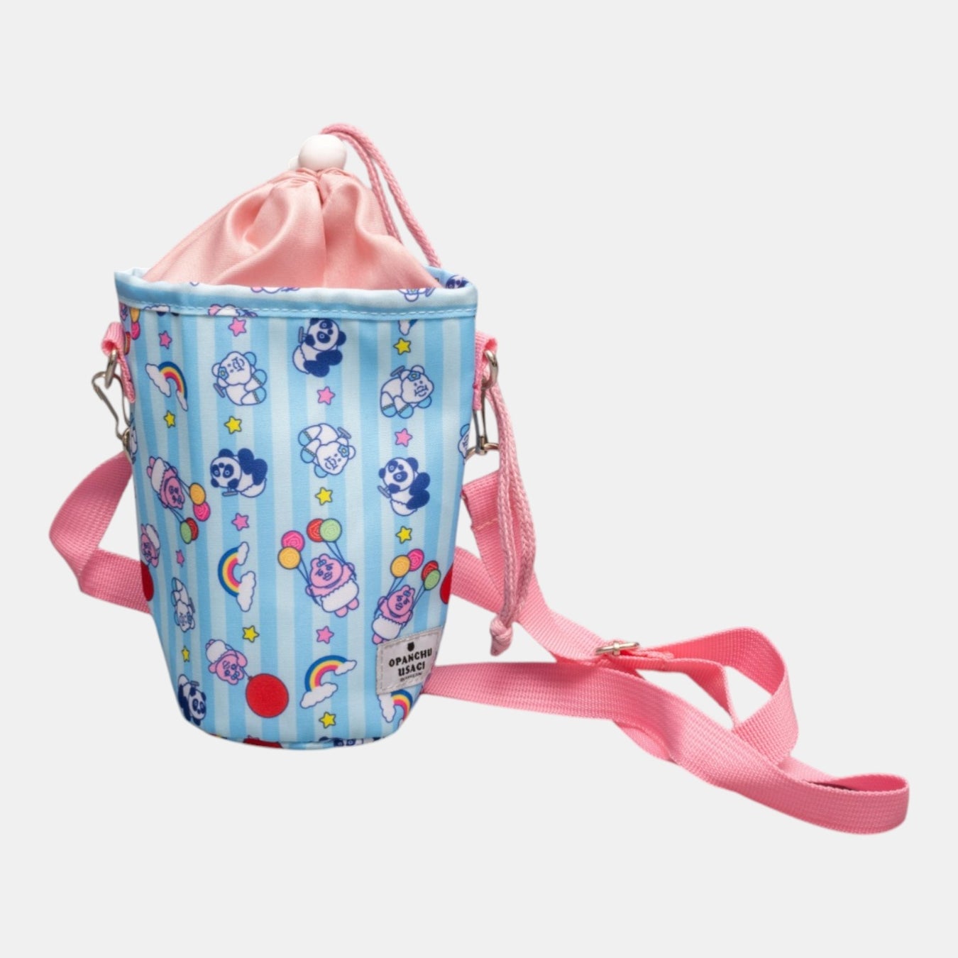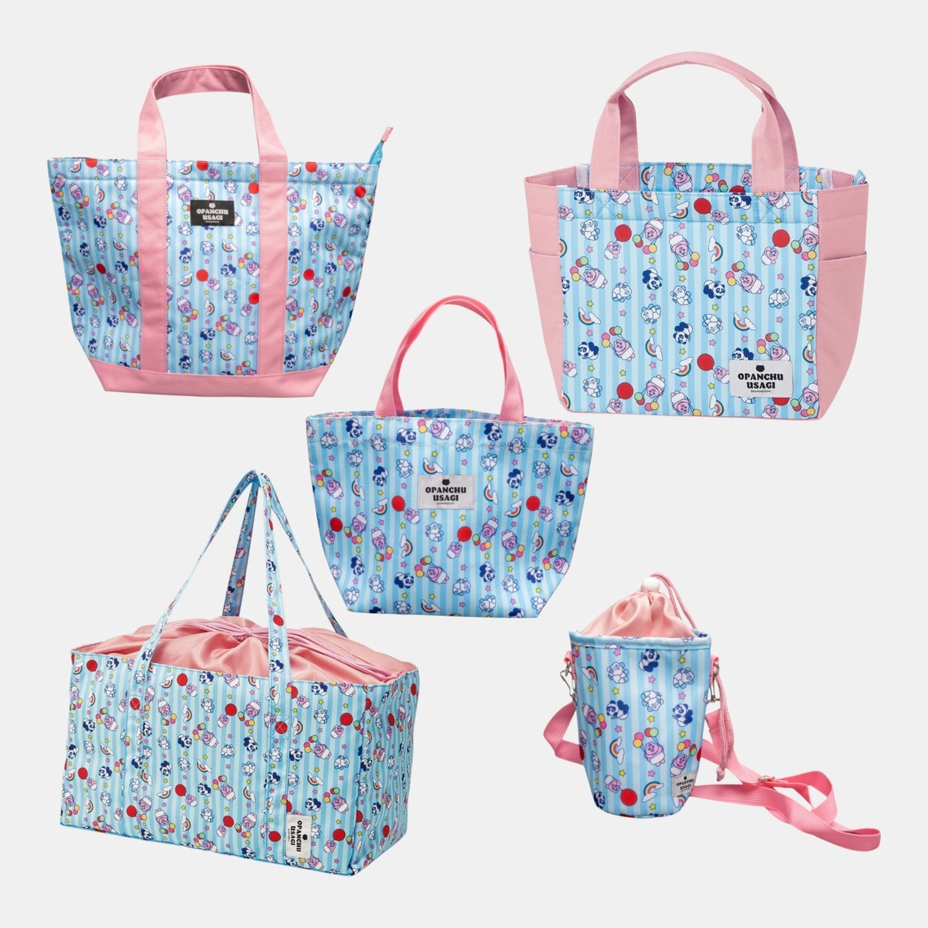 「おぱんちゅうさぎ」のキュートな姿が描かれた、ランチタイムや日々のお買い物に活躍する保冷バッグやペットボトルケースなど全5アイテムが登場します。