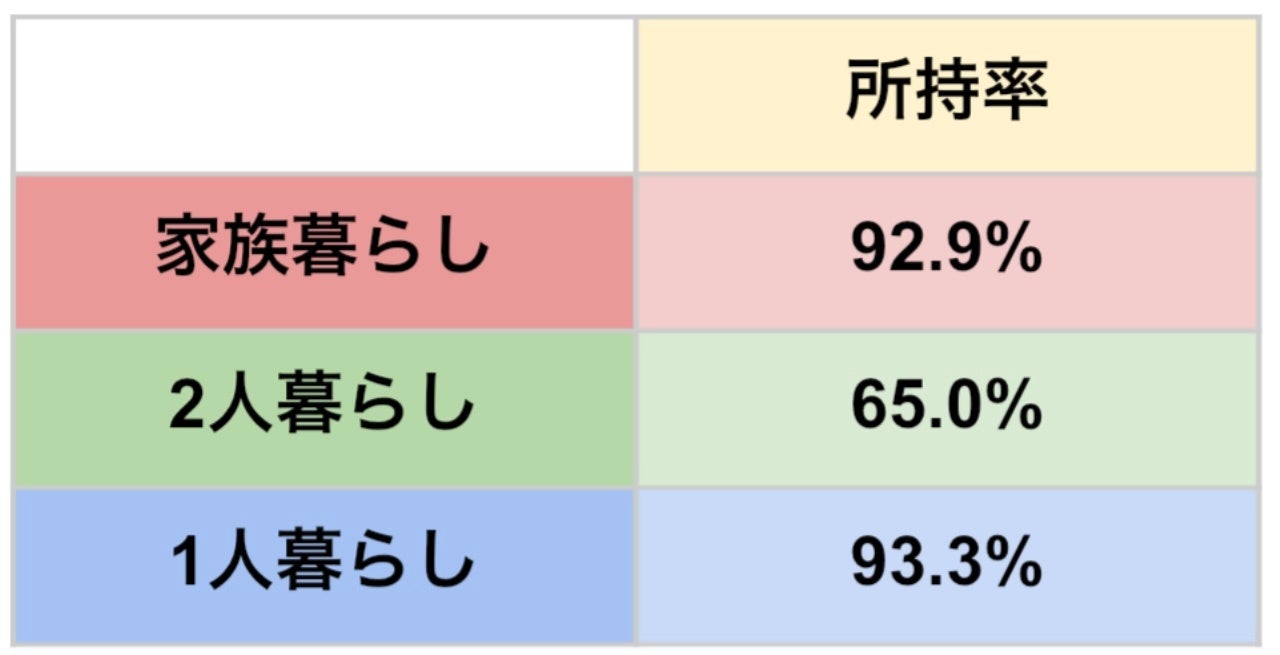 家族構成で所持率に違い