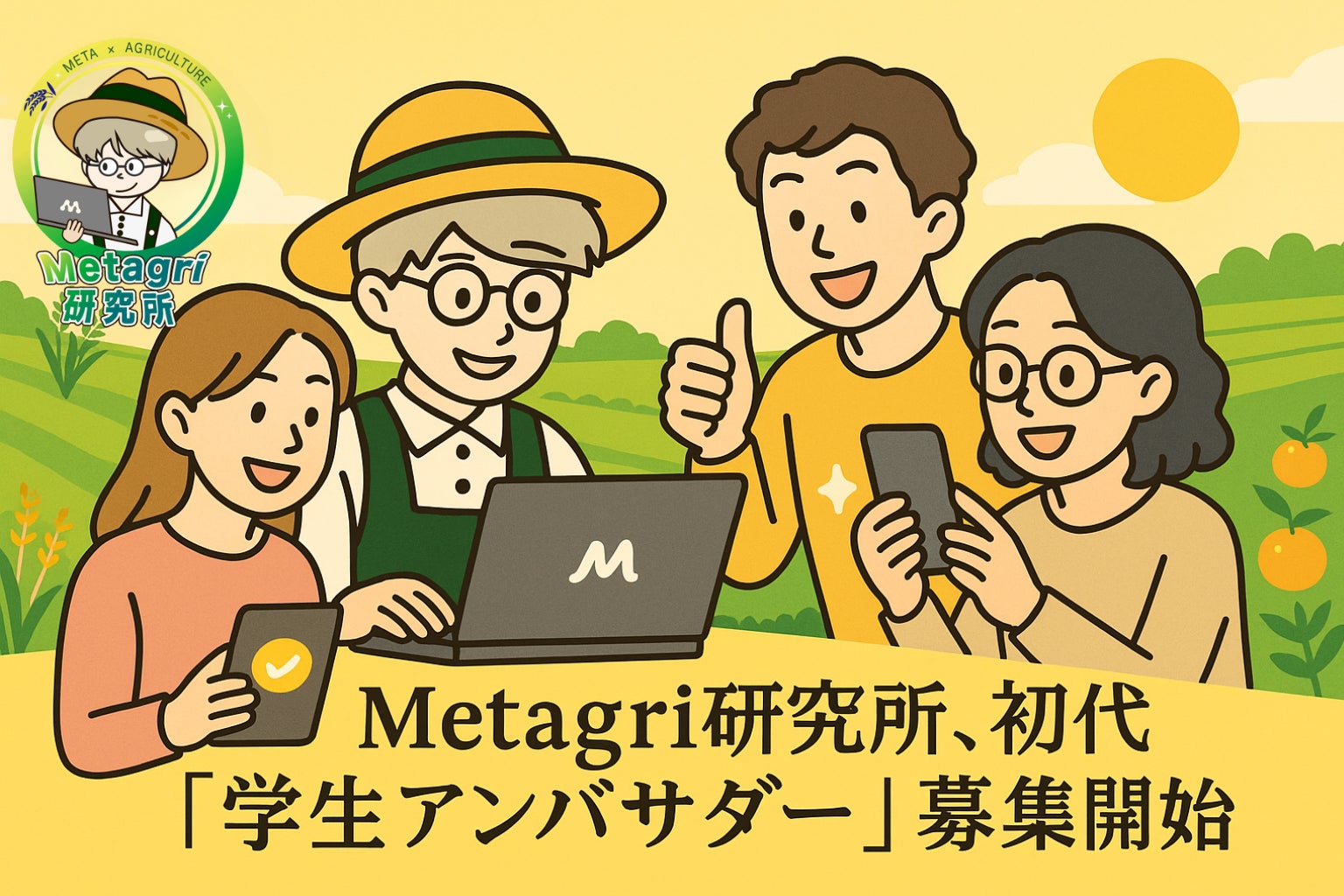 農業×web3のコミュニティ「Metagri研究所」(運営:株式会社農情人、本社:千葉県船橋市)は、2025年5月14日(水)より、日本の農業の未来を共に創造する意欲ある大学生・大学院生を対象とした「Metagri学生アンバサダー」プログラムを新たに開始し、その第一期メンバーの募集を開始いたします。このプログラムは、学生ならではの視点と行動力を活かし、Metagri研究所の活動を推進するとともに、次世代の農業と地域活性化を担う人材育成を目指します。