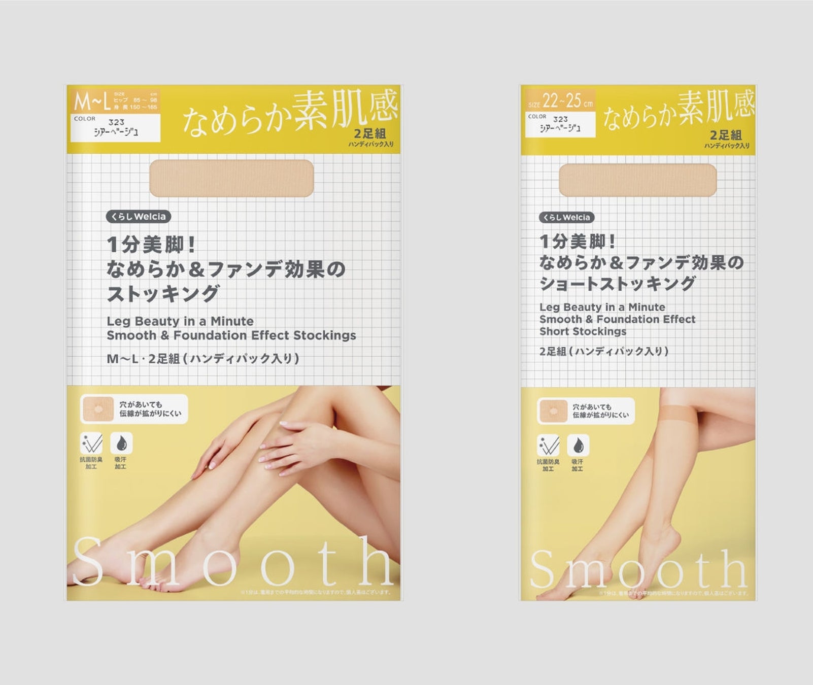 まるで履くファンデ!1分で美脚が叶う「1分美脚!なめらか&ファンデ効果のストッキング」「1分美脚!なめらか&ファンデ効果のショートストッキング」
