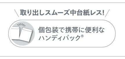 個包装で携帯に便利なハンディーパック。取り出しもスムーズ中台紙レスです。