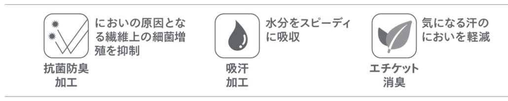 ・抗菌防臭効果:ニオイの原因となる繊維上の細菌増殖を抑制します