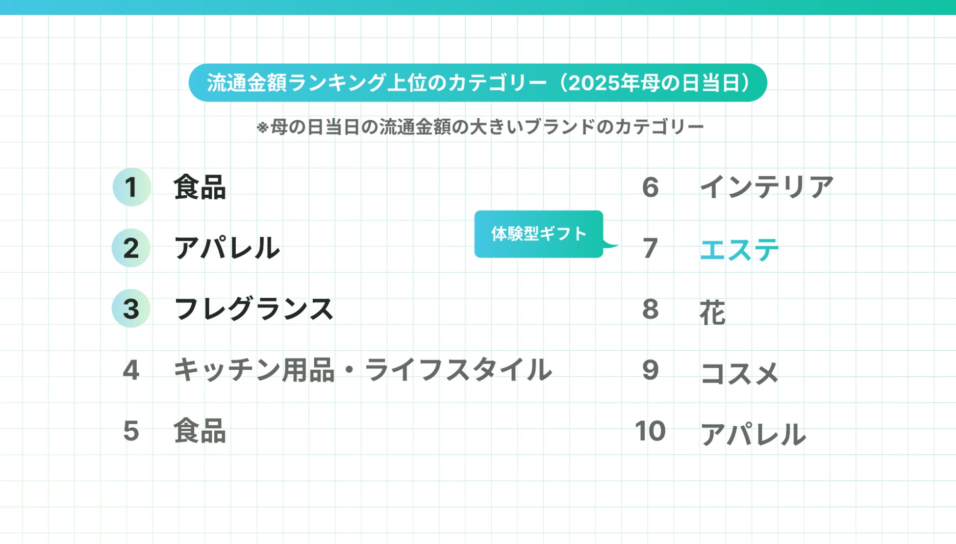 近年、贈り物の目的や手段は大きく変化しており、季節イベントに限らず、推し活や日常のちょっとした感謝の気持ちを伝える手段として、eギフトのニーズが広がっています。特に母の日は、誕生日やバレンタインに比べて直前に気づく方も多く、「今すぐ贈れる」eギフトとの相性が非常に良い日です。また、サプライズ性よりも「感謝の気持ちを伝えること」を重視する傾向が強いため、当日にプレゼントを届けたいというニーズが高いです。今年はモノよりコトを重視する価値観の広がりを受けて、体験型ギフトの人気が顕著に伸びました。今後も当社は、こうした利用者の多様なニーズに応えるべく、ギフトラインナップの充実や自社ECへの導入支援、法人向けの活用提案などを通じて、eギフト市場のさらなる可能性を広げてまいります。