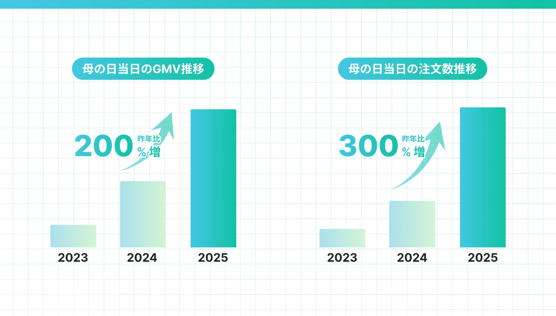 2025年「母の日」当日のGMVは、前年比2倍以上増加