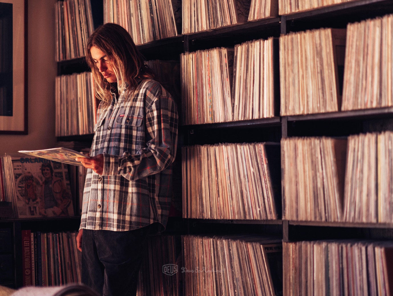 ローレル・キャニオンからの挨拶状」として届いた絵はがきには、かつてアメリカ第2の都市と称えられた、ハリウッドシャトーの屋根裏のひび割れた窓から望める砂塵舞う景色が写っている。カリフォルニア、L.A.にあるローレル・キャニオン、ここが今回のデウス最新コレクションのテーマだ。誰からも名前を忘れ去られた郊外にあるストリートでさえ、様々な物語が眠っている。そのハリウッド・ヒルズの小高い場所は、フォークロック(当時の人たちからすれば、ソフトロック程度だったかもしれないが・・・)の発祥地であり、60~70年代にロサンゼルスで流行したサイケデリック・シーンの中心だった。今なお語り継がれるローレル・キャニオンの伝説、そしてそこに根付いたカルチャーを、今回のコレクションで伝えたい。