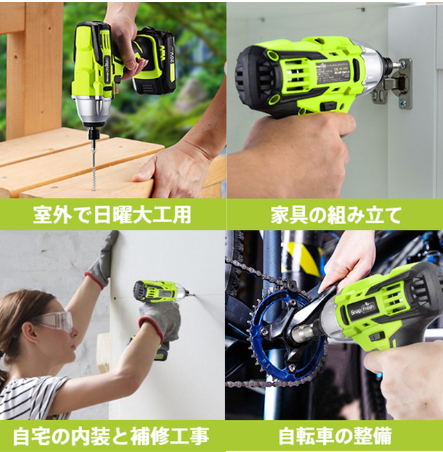 - 日曜大工や家具の組立て、自転車の整備などDIYに必要なビットがおおよそ揃った軽量&コンパクト&便利なインパクトドライバーセットです。