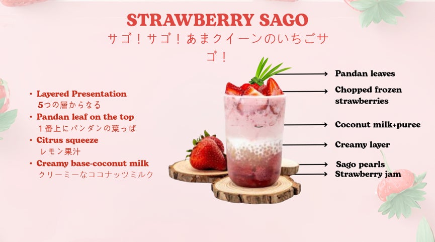 兵庫県産あまクイーンを使用したジャムの優しい甘みに、爽やかなエルダーシロップとミントの香り、シュワっとはじけるソーダが暑い夏にぴったりなドリンクを作りました。