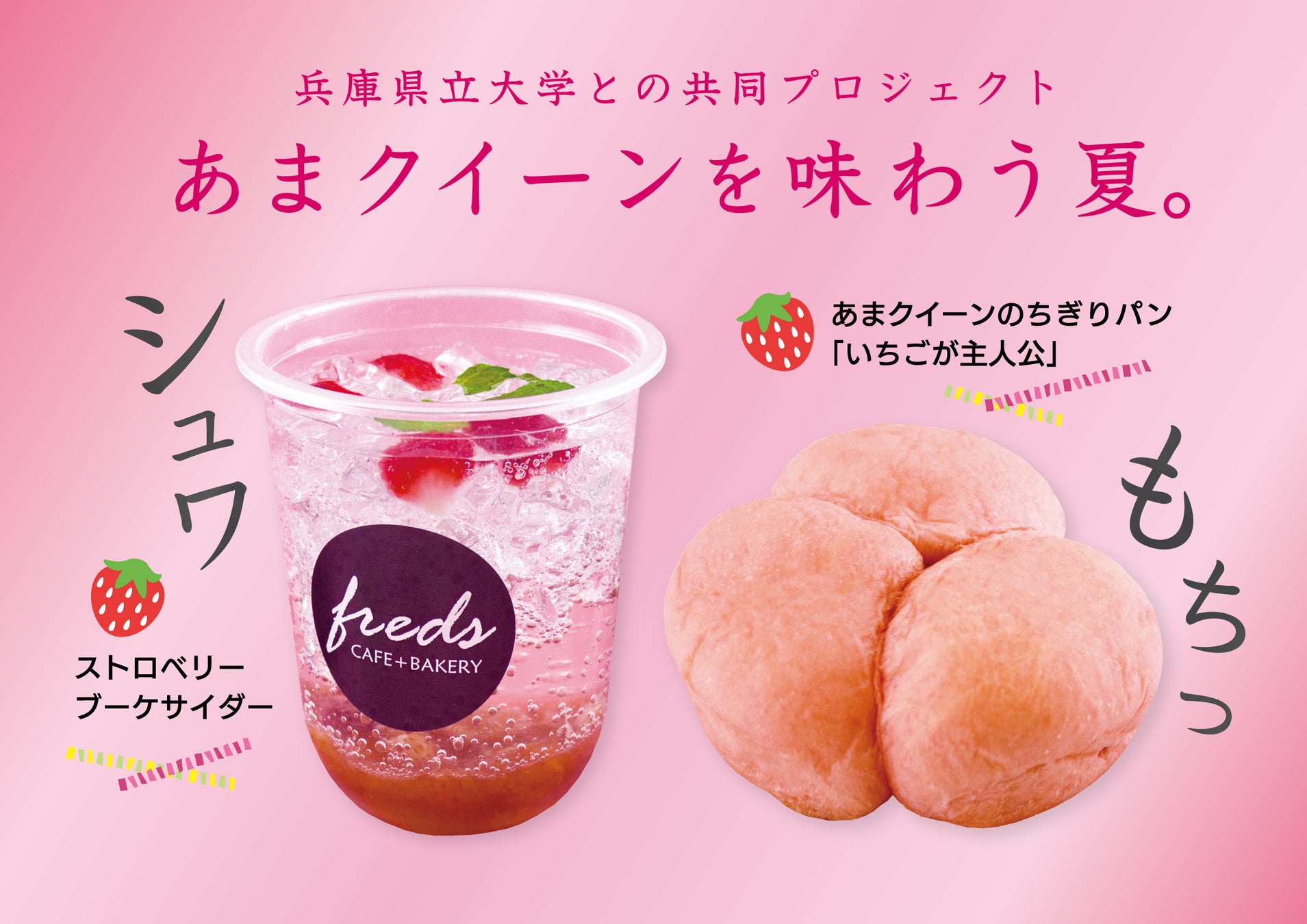 【フレッズカフェ】兵庫県立大学・株式会社NOUENとフードロス問題を考える。廃棄されてしまう兵庫県産いちごの女王"あまクイーン″を使用したパンとドリンクを開発