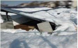 太陽電池発電設備のソーラーパネル上に堆積した雪や氷の重みにより、大部分のソーラーパネルが破損、架台が倒壊、破損事故になった。