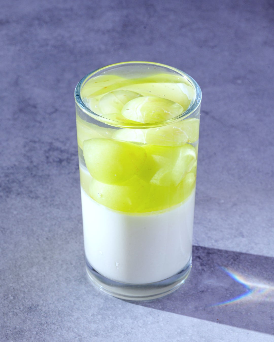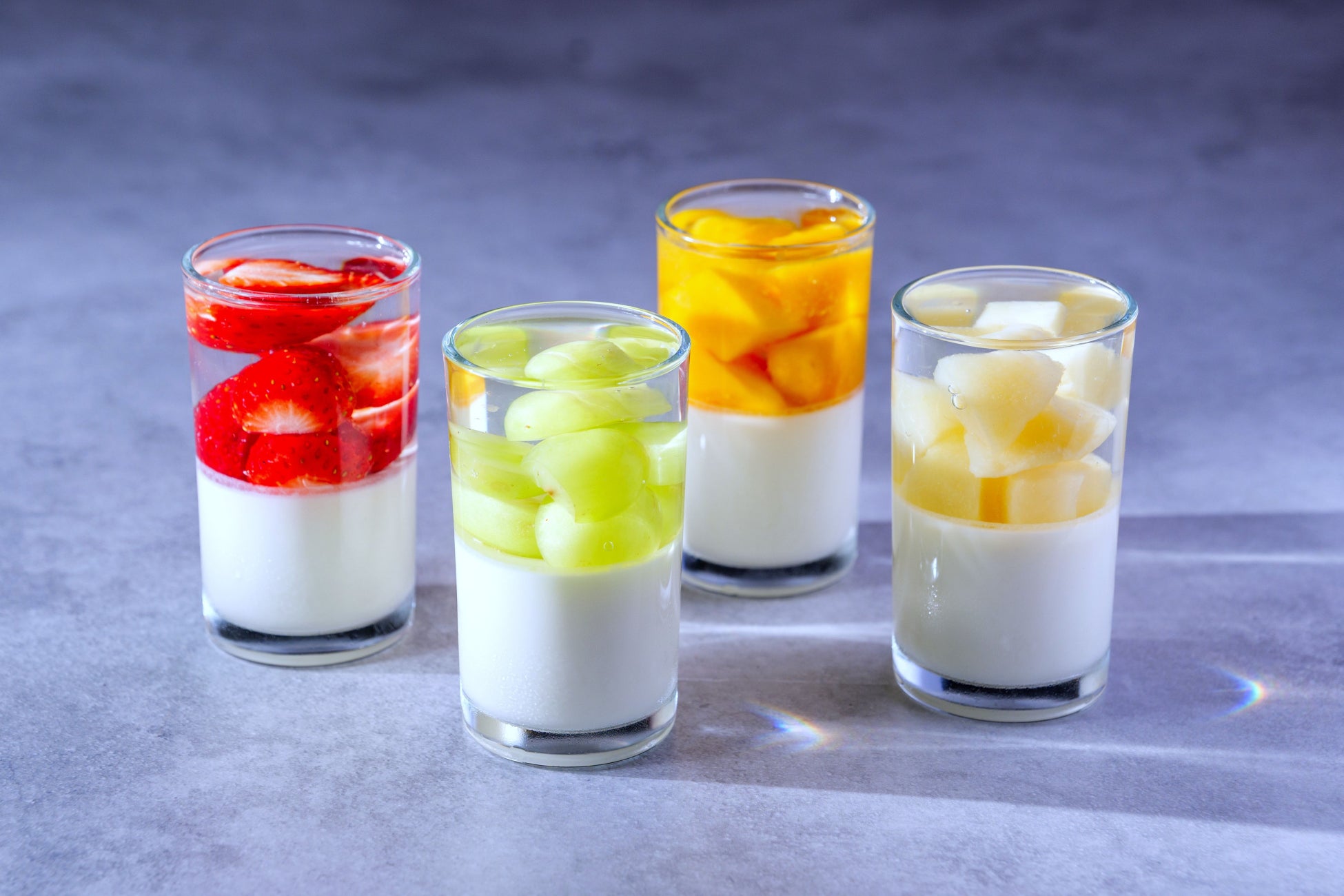 グラスを彩るのは、芳醇な香りと濃厚な甘みが特徴の「マンゴー」、みずみずしく甘い「桃」、爽やかな香りとさっぱりとした甘みが魅力で“ぶどうの女王”と呼ばれる「シャインマスカット」、色鮮やかで甘酸っぱい「苺」の4つのフレーバー。ブランマンジェは、石川県・能登の自然が育んだ「能登ミルク」を贅沢に使い、ミルクの旨みをしっかりと感じながらも、口に入れた瞬間にふわりと溶けてゆく軽やかさが特徴です。異なる層が織りなすハーモニーをひと口にお楽しみください。
