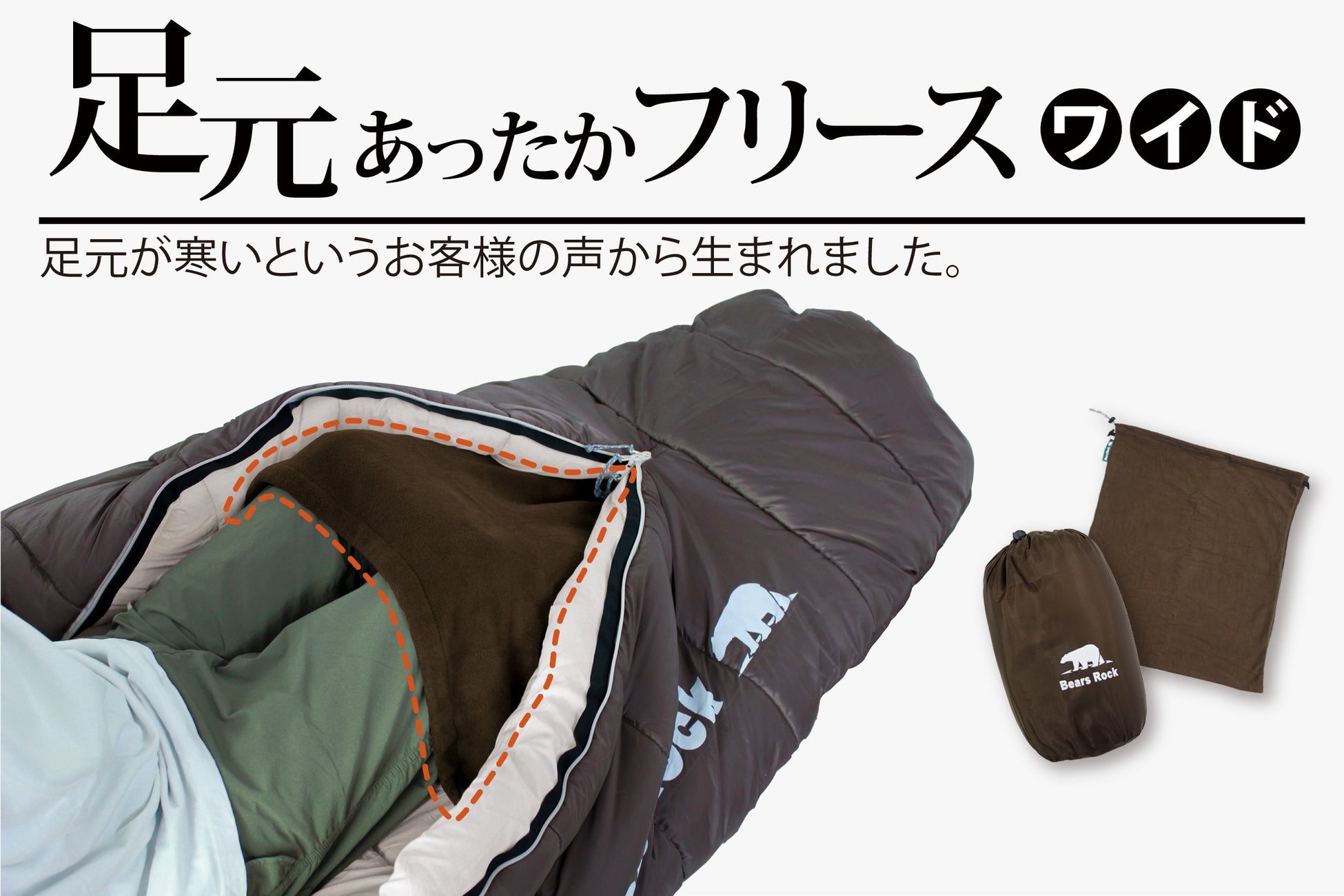 Bears Rockの寝袋は肌触りがよく、布団のようにふかふかで心地よい暖かさにこだわっています。