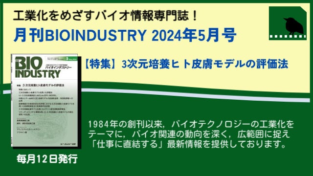 生体に近いモデルを構築可能な3次元培養ヒト皮膚モデルの評価法を紹介!『月刊BIOINDUSTRY 2024年5月号』が5月12日に発売。