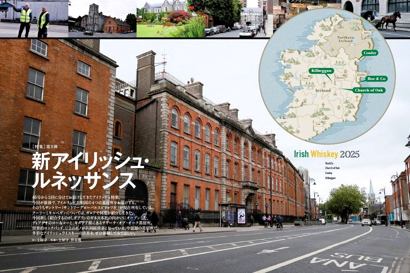 46号から3回に分けてお届けしてきたアイリッシュ特集。ラストを飾るのは、アイリッシュの温故知新を体現するような4蒸留所です。ダブリンの中心地から郊外、北アイルランドとの国境まで、編集長・土屋が奔走! ロー&コー、チャーチ・オブ・オークをはじめとする躍進するアイリッシュウイスキーの勢いはもちろん、クーリーやキルべガンが示す「復興」と歴史の厚みも、ぜひ感じてください。