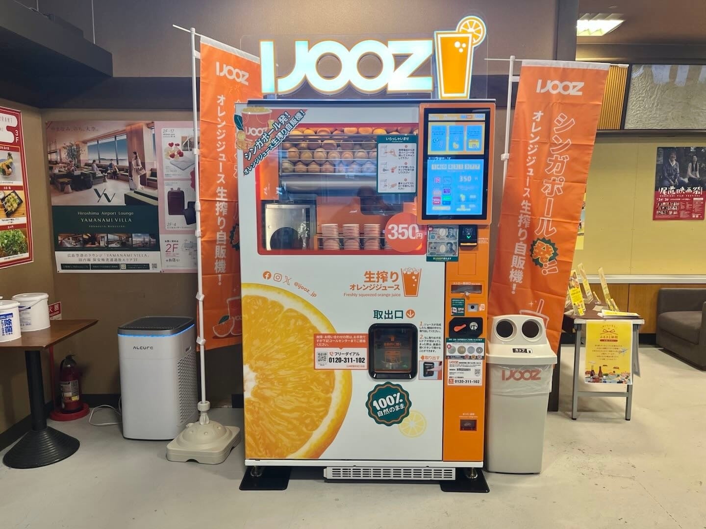 【広島県内初】広島空港で350円生搾りオレンジジュース自販機「IJOOZ」が稼働開始