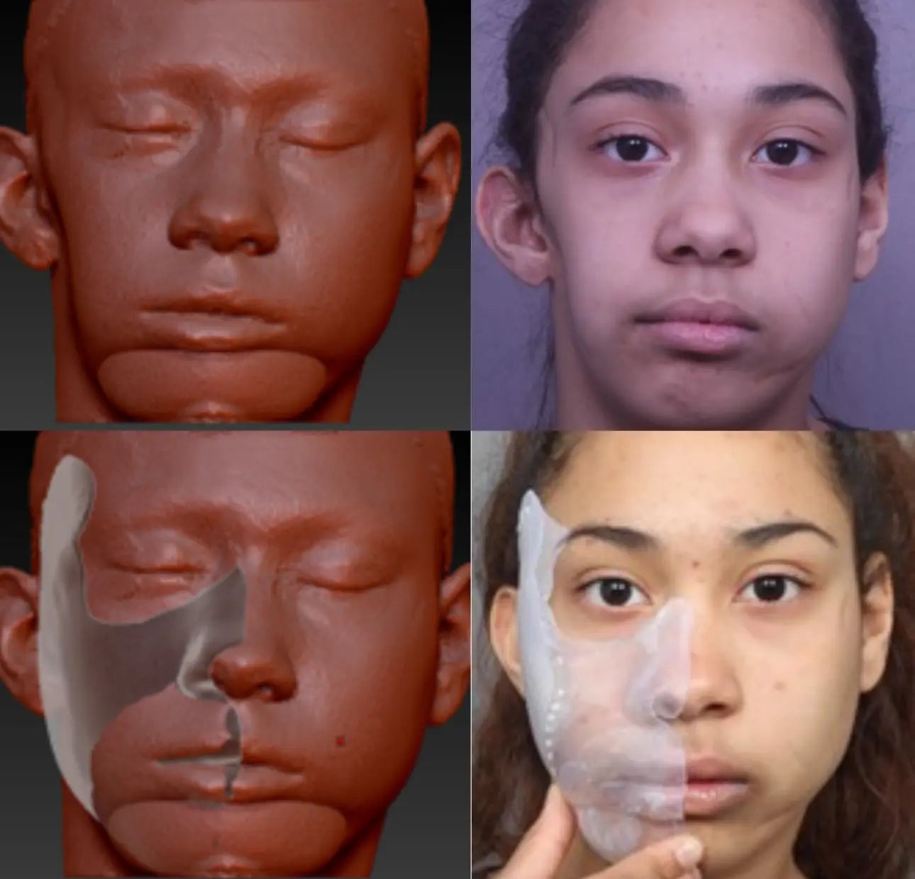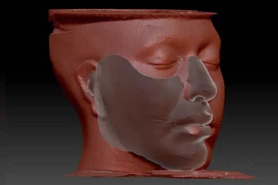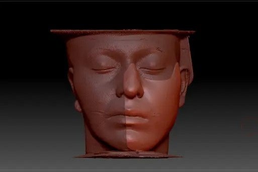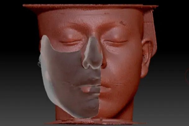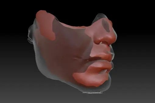 ZBrushなどのデジタル彫刻ソフトを使用し、患部側でどの領域が必要になるのかを特定し、皮膚組織の健側モデルのある部位(鼻や顎の位置など)を定義します。