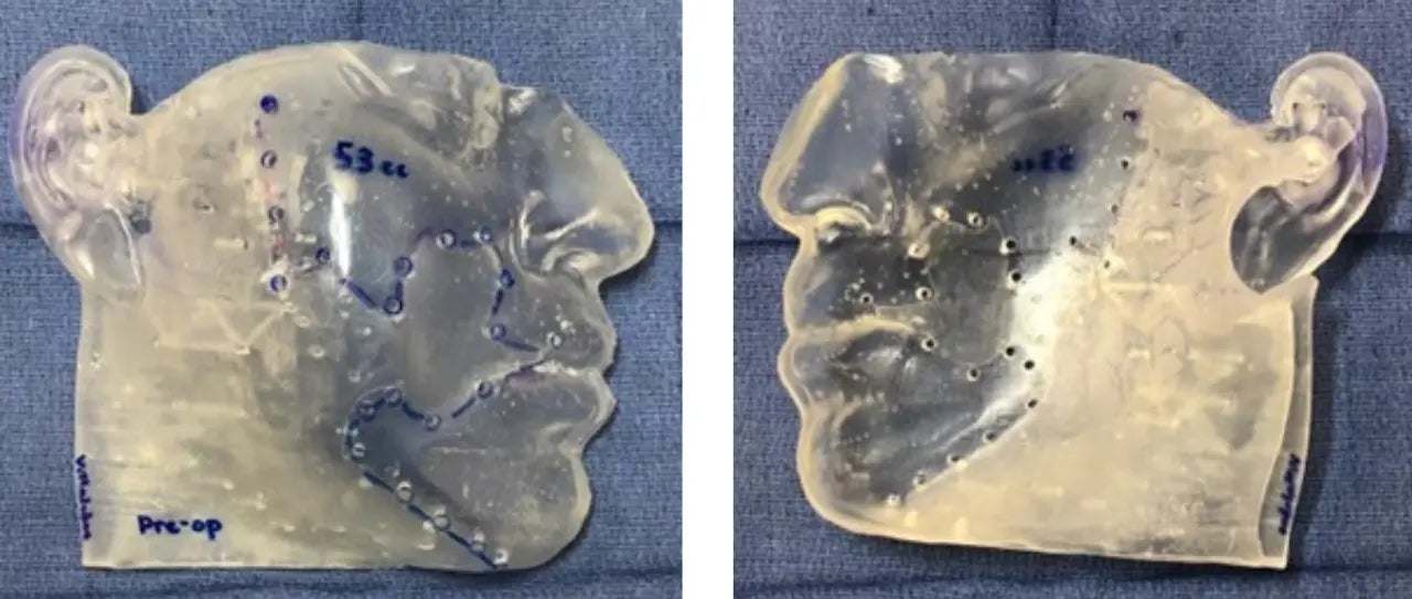 この新たな手法では、術前の体積欠損の推定と手術室での注入量の間に80~100%の精度があることが実証されています。この研究を通して、イリノイ大学頭蓋顔面形成センターは、自己脂肪移植手術にデジタルワークフローを導入し、外科医の直感への依存を減らす利点があることを実証しました。