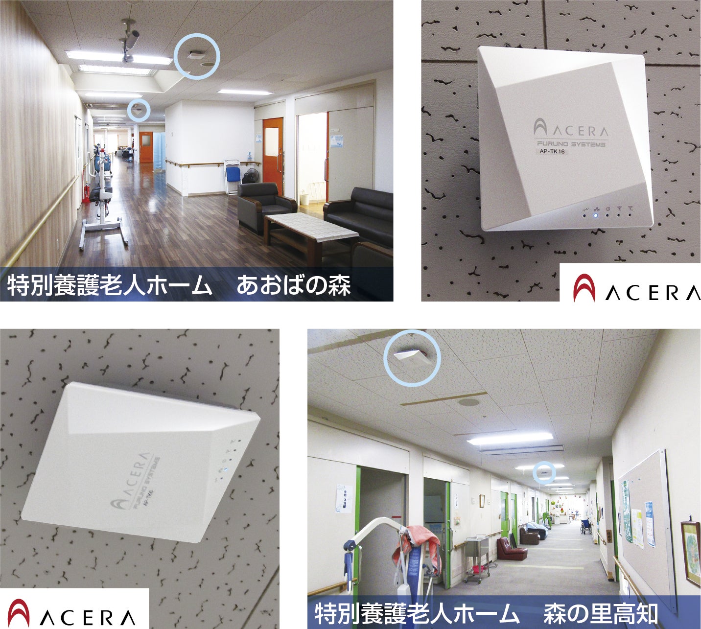 「特別養護老人ホーム 森の里高知」「特別養護老人ホーム あおばの森」「ショートステイ 森の里」「ケアハウス 花の郷高知」の各フロアに、合計約70台のACERAを設置し無線LAN環境を整えています。ナースコールやベッドサイドに設置するマットセンサーからの通知をスタッフが所持するスマートフォンが受信し、適切なタイミングで介助ができるようになりました。また、スマートフォンで見守りカメラの映像を見ることもでき、緊急時にも即座に支援・サポート対応ができる体制を整えました。