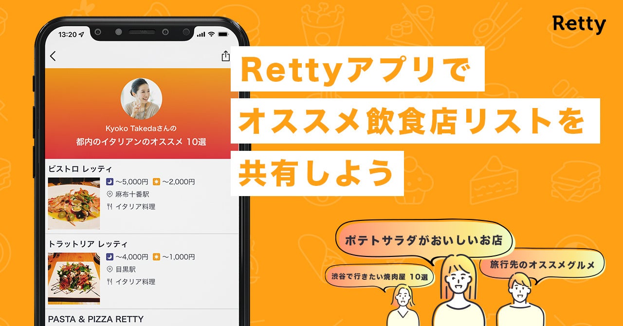 Rettyアプリでオススメ飲食店を一覧で共有できる、オリジナルリスト共有機能をリリース