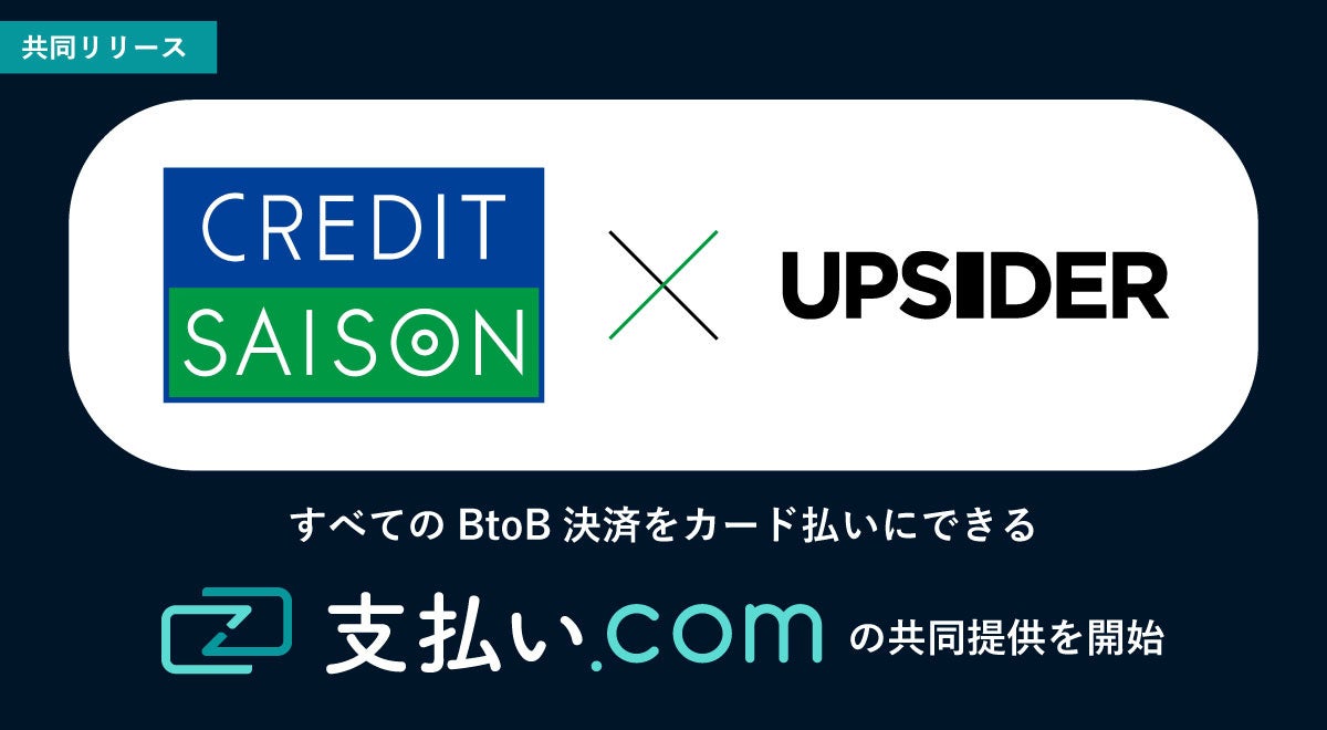 株式会社クレディセゾン(本社:東京都豊島区、代表取締役(兼)社長執行役員COO:水野克己、以下:当社)は、法人カードサービスを提供する株式会社UPSIDER(本社:東京都港区、代表取締役:宮城徹、以下:UPSIDER)と新たなBtoB決済サービス構築に向けた業務提携契約を締結し、4月27日(水)よりすべてのBtoB取引でクレジットカードを利用できる決済サービス「支払い.com」の共同提供を開始いたします。「支払い.com」の提供を通して、利用企業様の資金繰りの改善をサポートいたします。