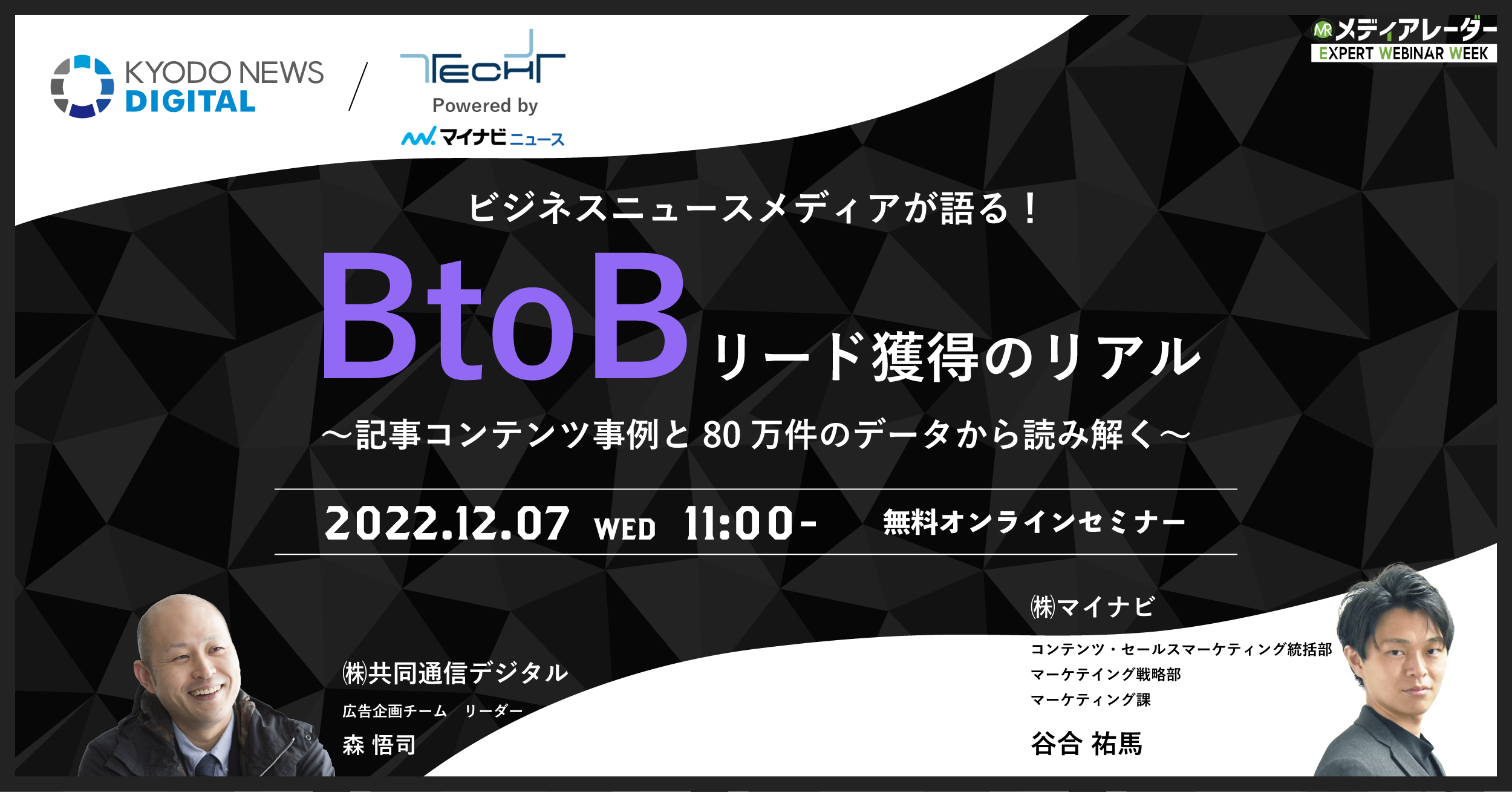 【12月7日開催】「ビジネスニュースメディアが語る!BtoBリード獲得のリアル~記事コンテンツ事例と80万件のデータから読み解く~」