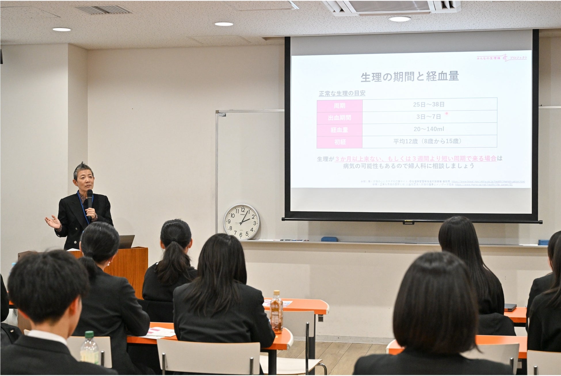 ②生理・生理痛に関するセミナー(産婦人科医・高尾美穂先生より、生理・生理痛の基礎知識、対処法等について、生徒の疑問に答える形式で学ぶ)