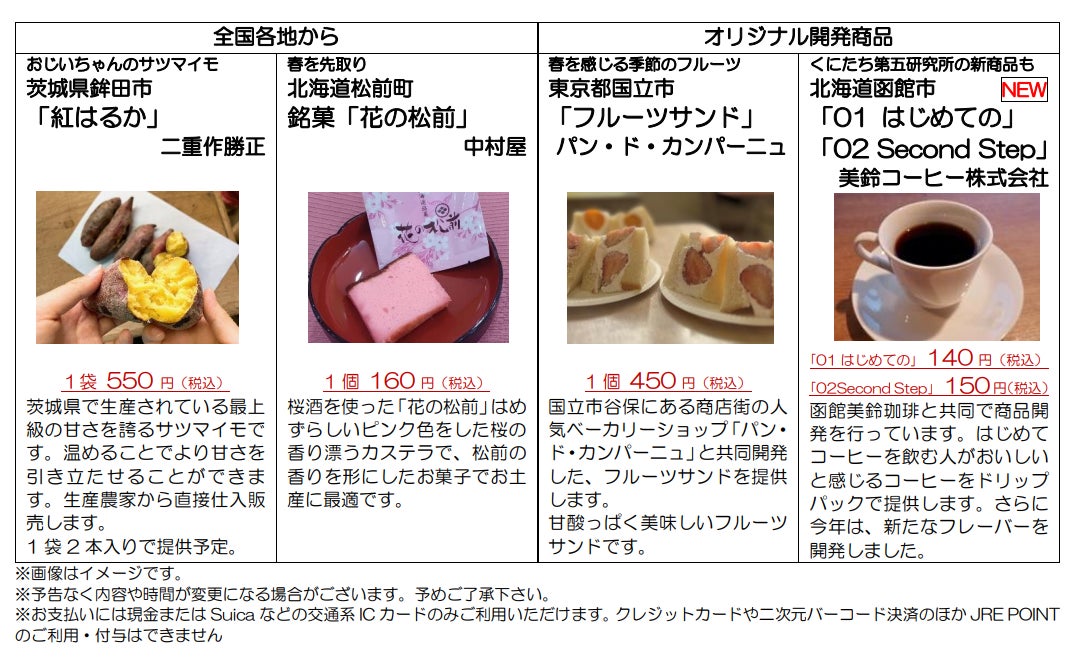 高校生が自ら、国立市内のお店とのコラボ商品の開発や、北海道・茨城県からの商品の仕入れを行いました。寒さの厳しい時期ですが、大学通りの桜が満開に咲き誇る国立の春に思いをはせながら、サツマイモやお菓子の甘さやコーヒーのほろ苦さをお楽しみください。