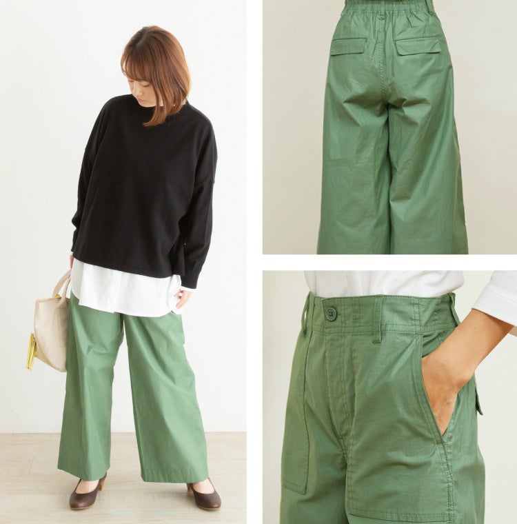 ■ストレッチバックサテンワイドパンツ カーキ 8,910円(税込)