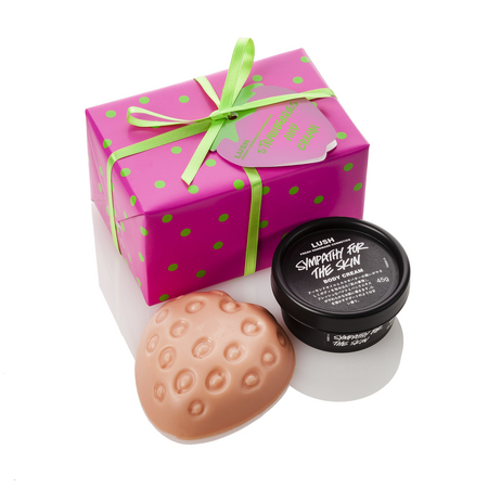 Contains… 苺畑でつかまえて 75g(マッサージバー)、肌の愛情 45g(ボディクリーム)