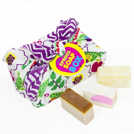人気のソープを3種類組み合わせた風呂敷ギフトが登場。フルーティで優しく香る『ブラジル娘の唄』、レモンの香りがフレッシュに漂う『ボヘミアン』、ハチミツと花の香りが豊かな泡を包み込む『みつばちマーチ』。気分に合わせてシャワータイムを楽しめるギフトはどなたにも喜ばれるギフトです。何度もリユースできるラッピング『KNOT WRAP』の春らしいポップな柄にも注目。春のお出かけにバッグにしのばせてピクニックを楽しんで。