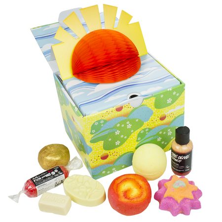 Contains… ブライトサイド 200g(バブルバー)、パチパチサーカス(バスボム)、君はマンゴー(バスメルツ)、華 50g、オリーブ収穫祭100g(シャワージェル)、洗隊レンジャー あか 100g(FUN/クレイソープ)、ゴールドフィーバー(バブルバー)、フローティング フラワー(バスボム)