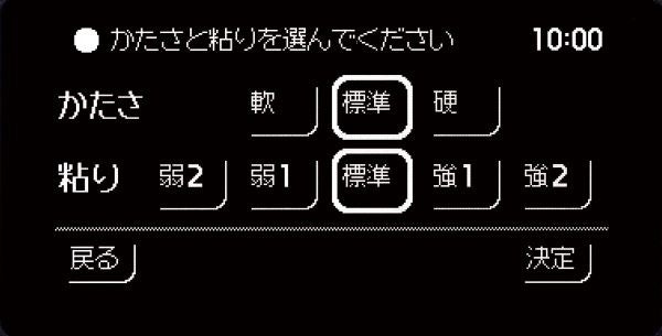 「かたさ」3段階(軟・標準・硬)・「粘り」5段階(弱2・弱1・標準・強1・強2)を選択するだけで、料理やその日の気分に合わせて15通りの炊き分けが簡単にできます。