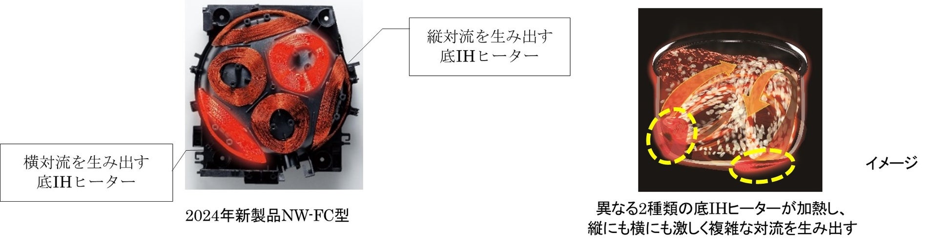 ●縦横無尽にお米を舞い上げる、激しい対流を実現した「3DローテーションIH構造」