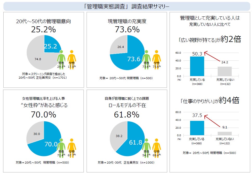 管理職者の充実度、男女ともに7割以上