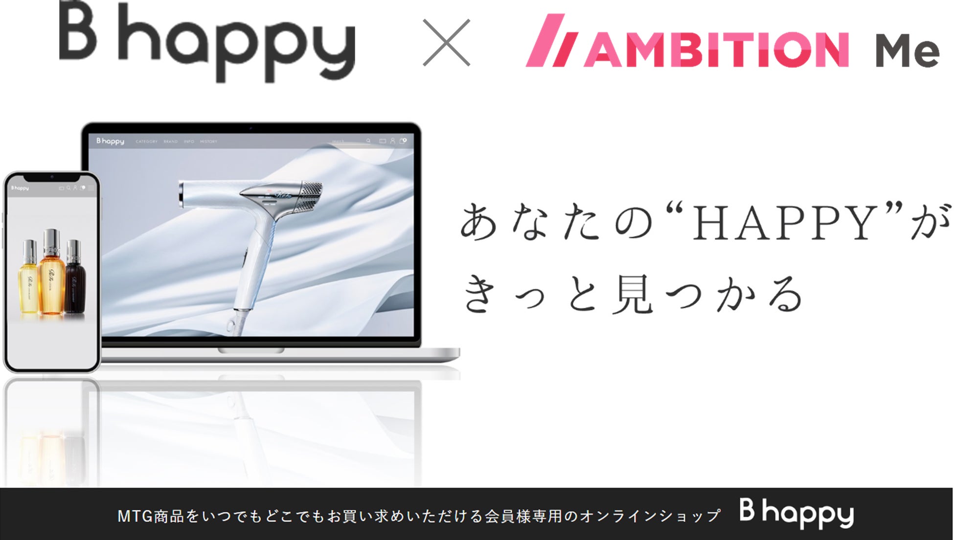 不動産 DX を推進する株式会社アンビション DX ホールディングス(証券コード「3300」、本社:東京都渋谷区、代表取締役社長 清水 剛、以下「当社」)は、入居者向けアプリ「AMBITION Me」内で、ReFaやSIXPADなど数多くの美容・健康に関するブランドを開発する株式会社MTG(本社:愛知県名古屋市、代表取締役社長:松下 剛、以下「MTG」)が運営する会員専用オンラインショップ「B happy」の導入を開始いたしました。