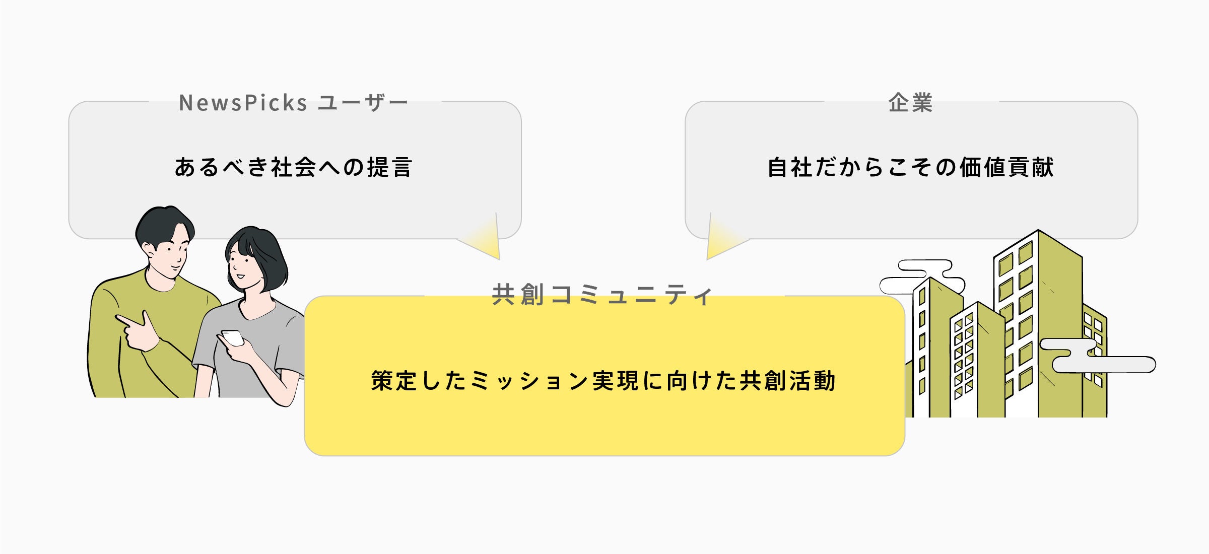 具体的には、客観的な立場による社会課題の探索と、企業が独自に解決できることの接合点をテーマ設定し、NewsPicksユーザーと共に期限付きのプロジェクトを立案、実行を行います。