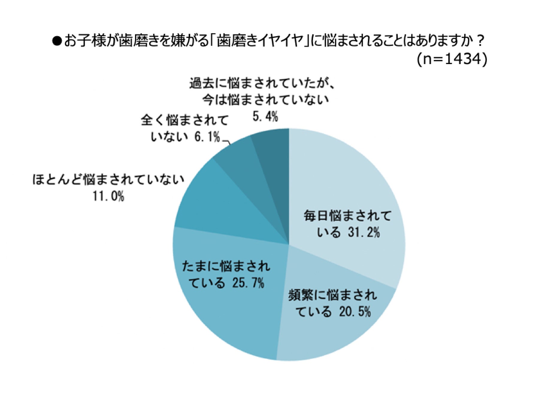 お子様が歯磨きを嫌がる「歯磨きイヤイヤ」に悩まされるママ・パパは8割弱。