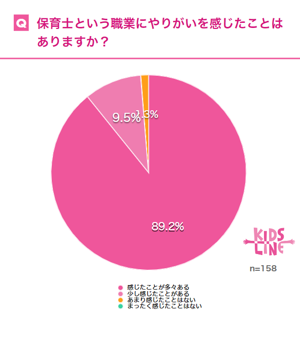 「あまり感じたことがない」という回答は1.3%で、大多数が「保育士はやりがいのある職業」と感じていることがわかります。