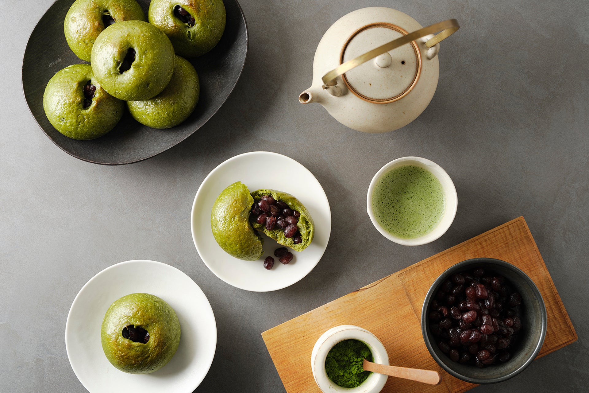 特長: パンの主役の1つである豆は、北海道産の大納言小豆。粒がつぶれないよう丁寧に釜へ投入し、豆の皮を残しふっくら炊きあげています。抹茶を加えたすっきりまろやかな生地で包むことで、大納言の上品な甘さを引き立てています。