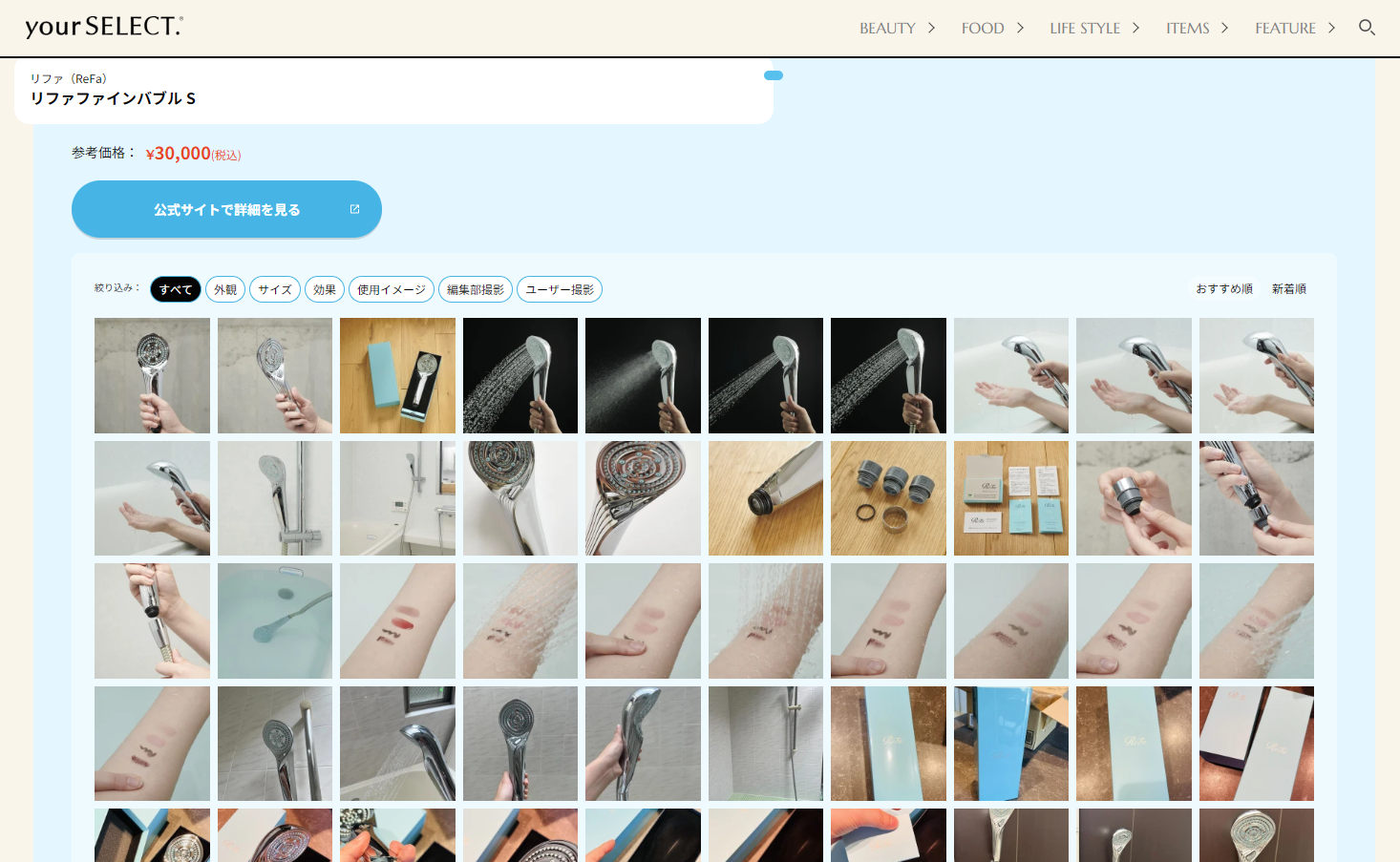オリジナルで編集部やユーザーが撮影した写真や動画を閲覧できる機能を追加しました。これにより、実際の商品の使用感を視覚的に確認できるようになり、購入前の不安を解消します。