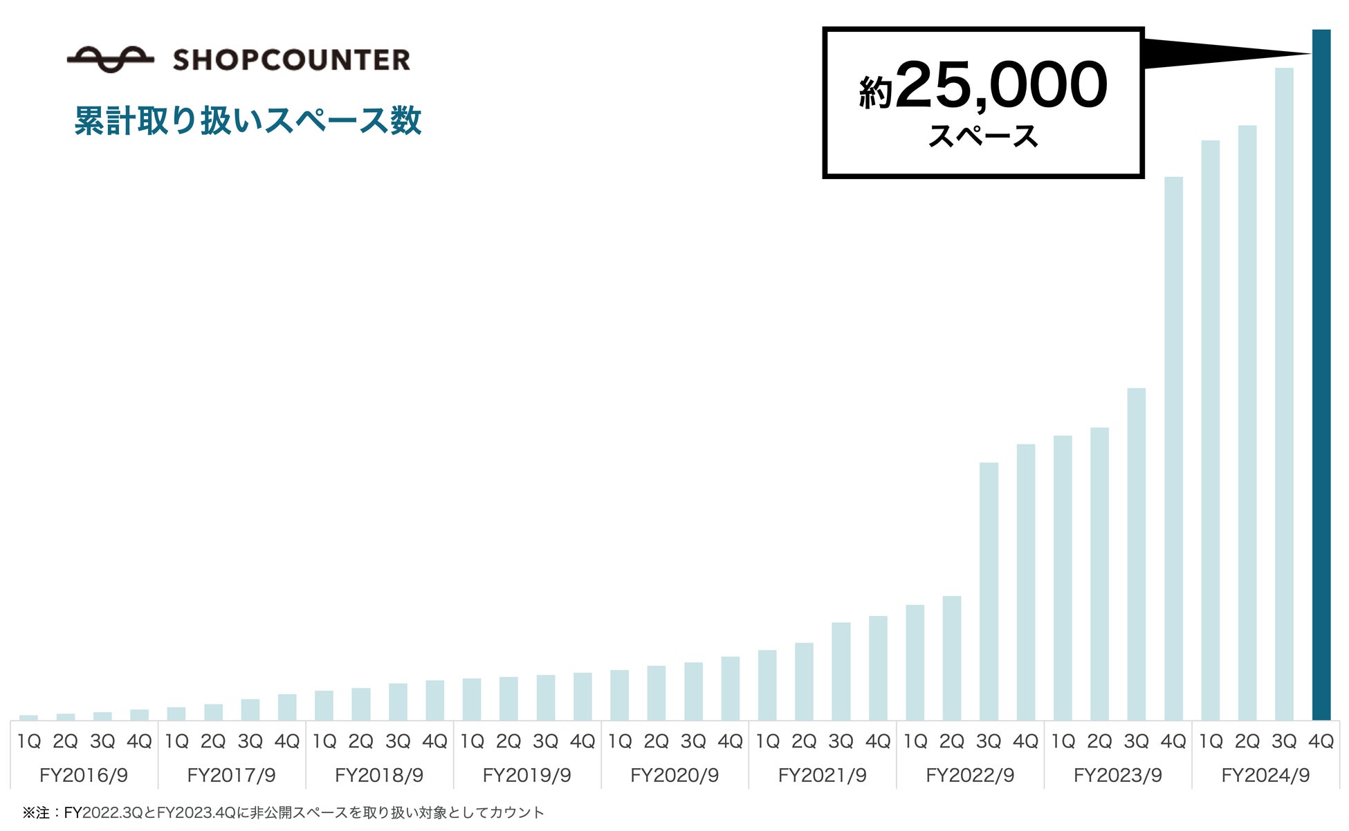 「ショップカウンター」は、ポップアップストア・催事・展示会などの出店/出展場所の予約がオンライン上でできるプラットフォームです。ショッピングモール、スーパーマーケット、百貨店、商店街、駅ナカ、オフィスビル、撮影スタジオ、展示会場など様々な商業スペースの検索・予約が可能です。2024年9月末時点で約70,000のテナントにご利用いただき、その業種の幅はアパレル、雑貨、食、生活サービスなど多岐にわたります。