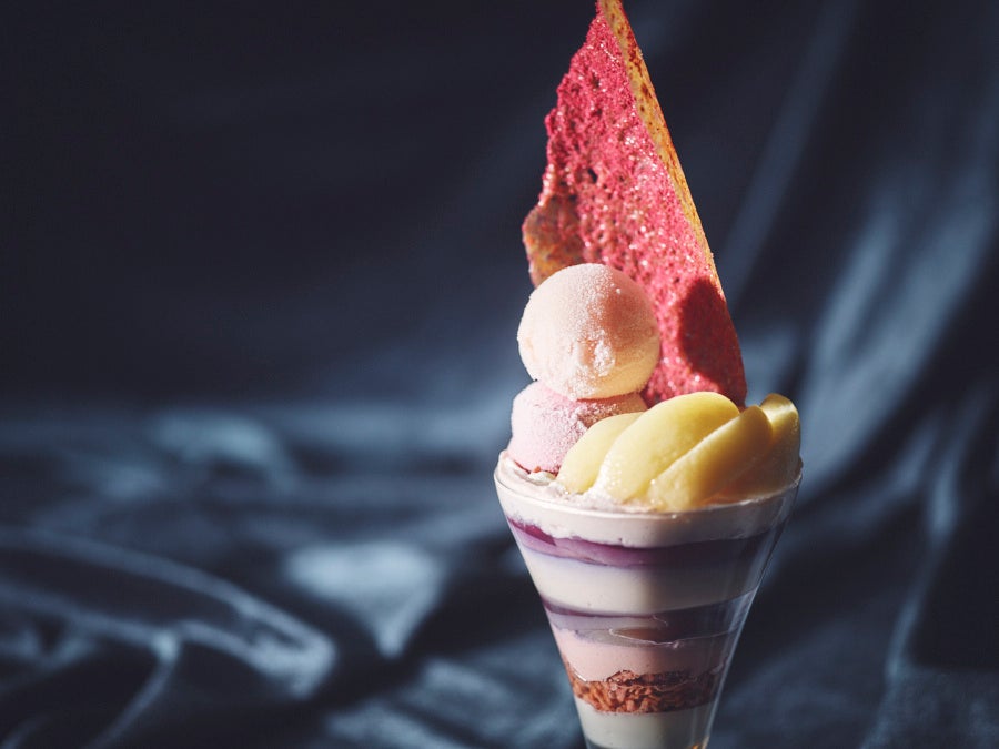テイストやテクスチャーの変化を愉しみながら、最後まで美味しくお召し上がりいただきたいという、エグゼクティブペストリーシェフ長田 学の想いがつまった、夏にぴったりのセンス溢れる涼しげなパフェをご堪能ください。