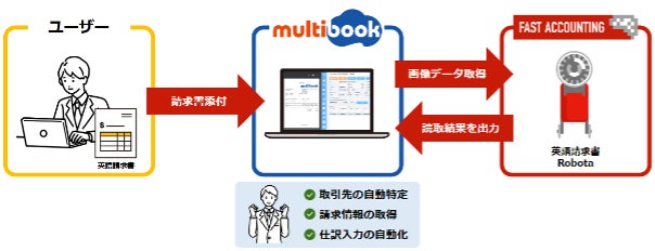 このmultibookが、経理分野に特化したAIエンジン「Robota」と連携することで、まずは、仕入先から受領した請求書の自動記帳を実現し、グローバルで拡販を進める経理BPOサービス「海外クラウド経理部」のデジタル化を促進する目玉機能として、拡張・成長させていく見込みです。