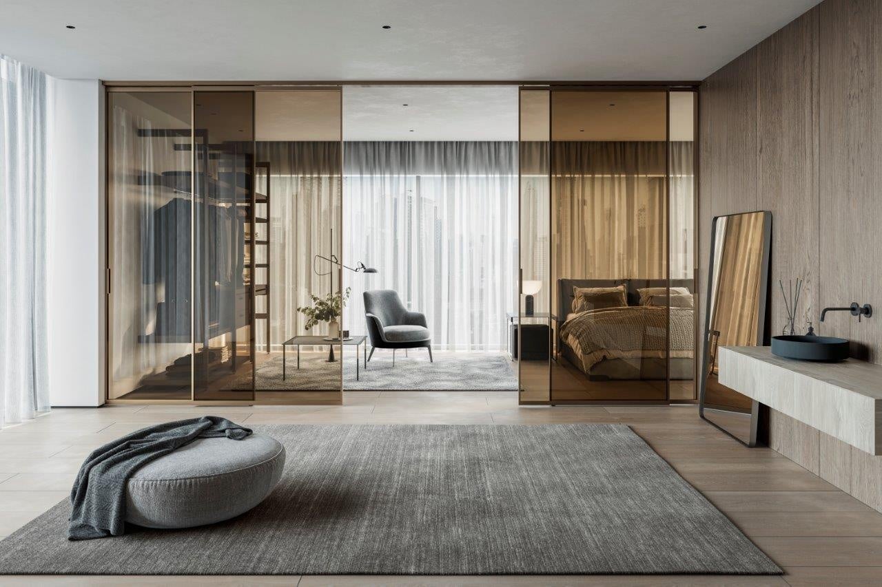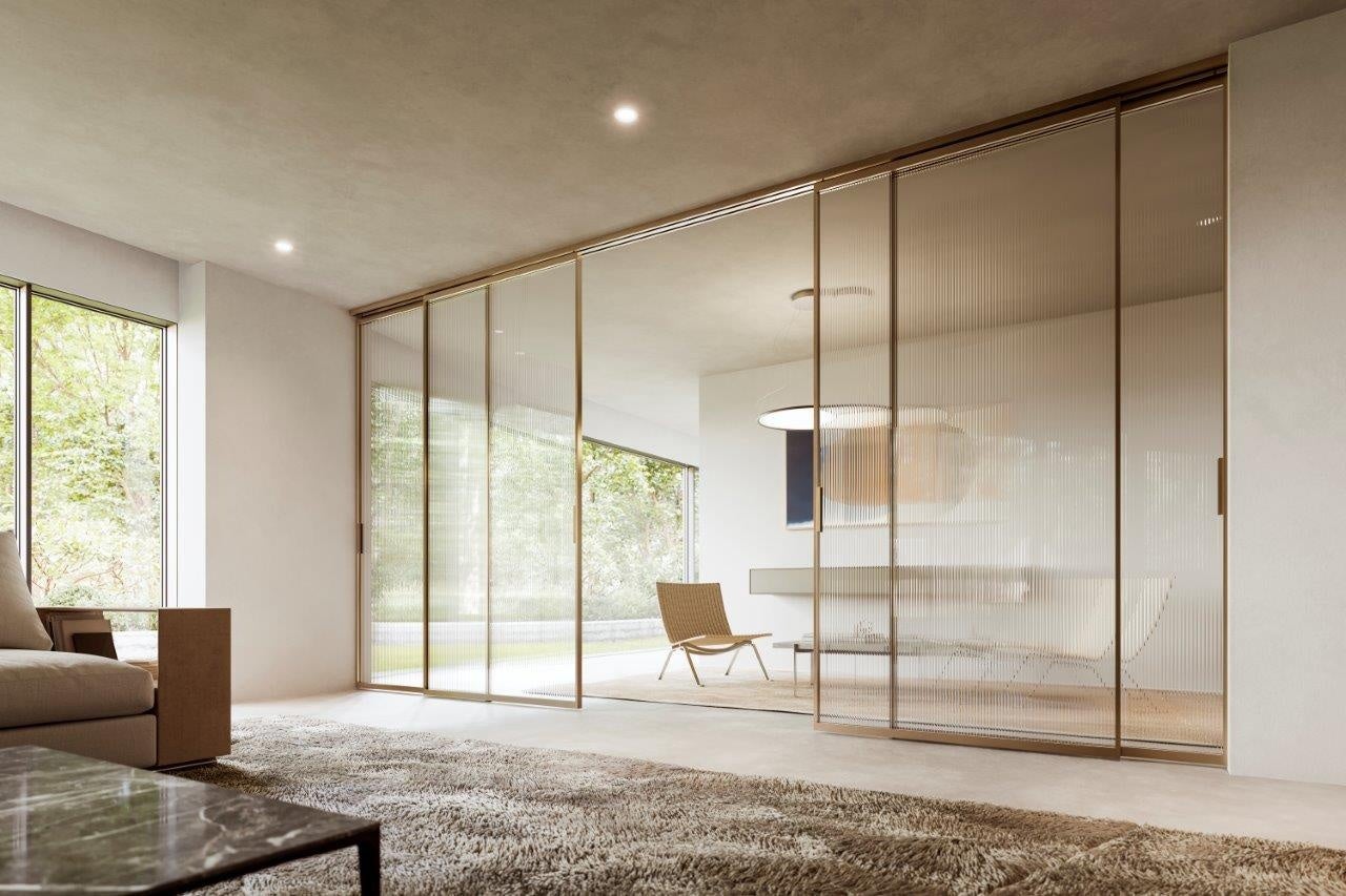 今回「プロダクトオブザイヤー2024」に入選したのは、当社のロングセラー商品《クアドロスリム》です。《クアドロスリム》は、幅16mmという細いフレームに大判のガラスをはめ込んだ、室内用ガラスドアです。日本の襖や障子を現代風にアレンジした商品で、部屋を仕切りながらも空間の繋がりを保ちます。一般住宅からホテルや店舗まで、様々な物件でご採用いただいています。