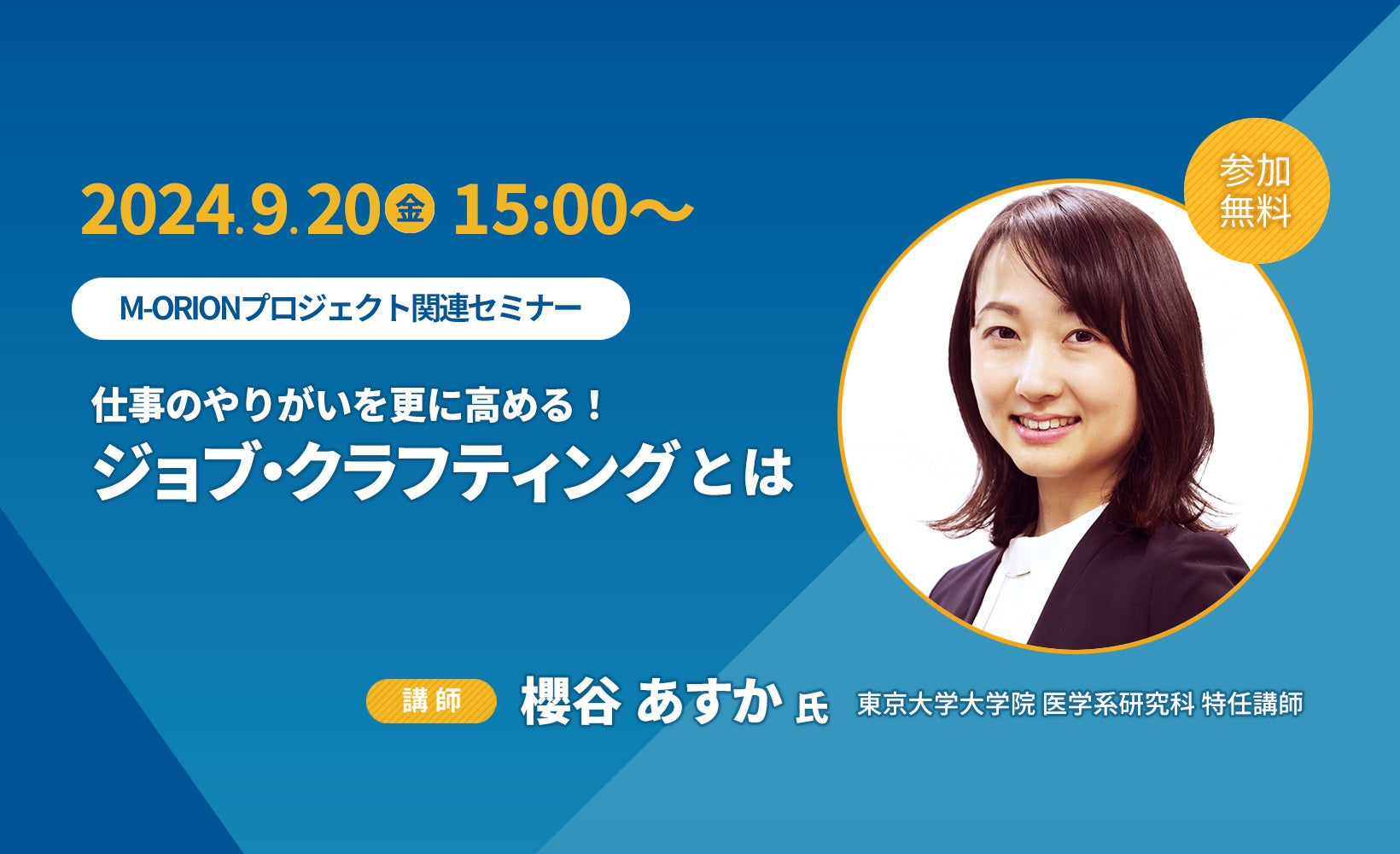 【9月20日(金)15時開始】「仕事のやりがいを更に高める!ジョブ・クラフティングとは」ライブ配信!東京大学大学院医学系研究科・特任講師の櫻谷あすか氏登壇セミナー&質問会を開催