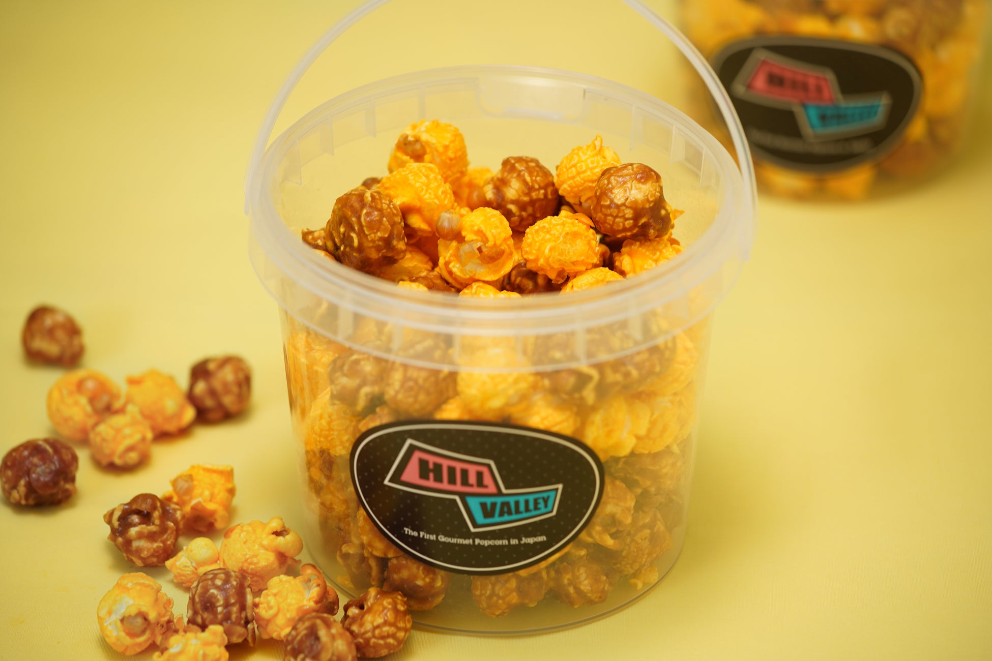 人気のキャラメルとチーズ味の2種類がミックスされたポップコーン。内容量も通常の2倍サイズでたっぷり楽しめます。