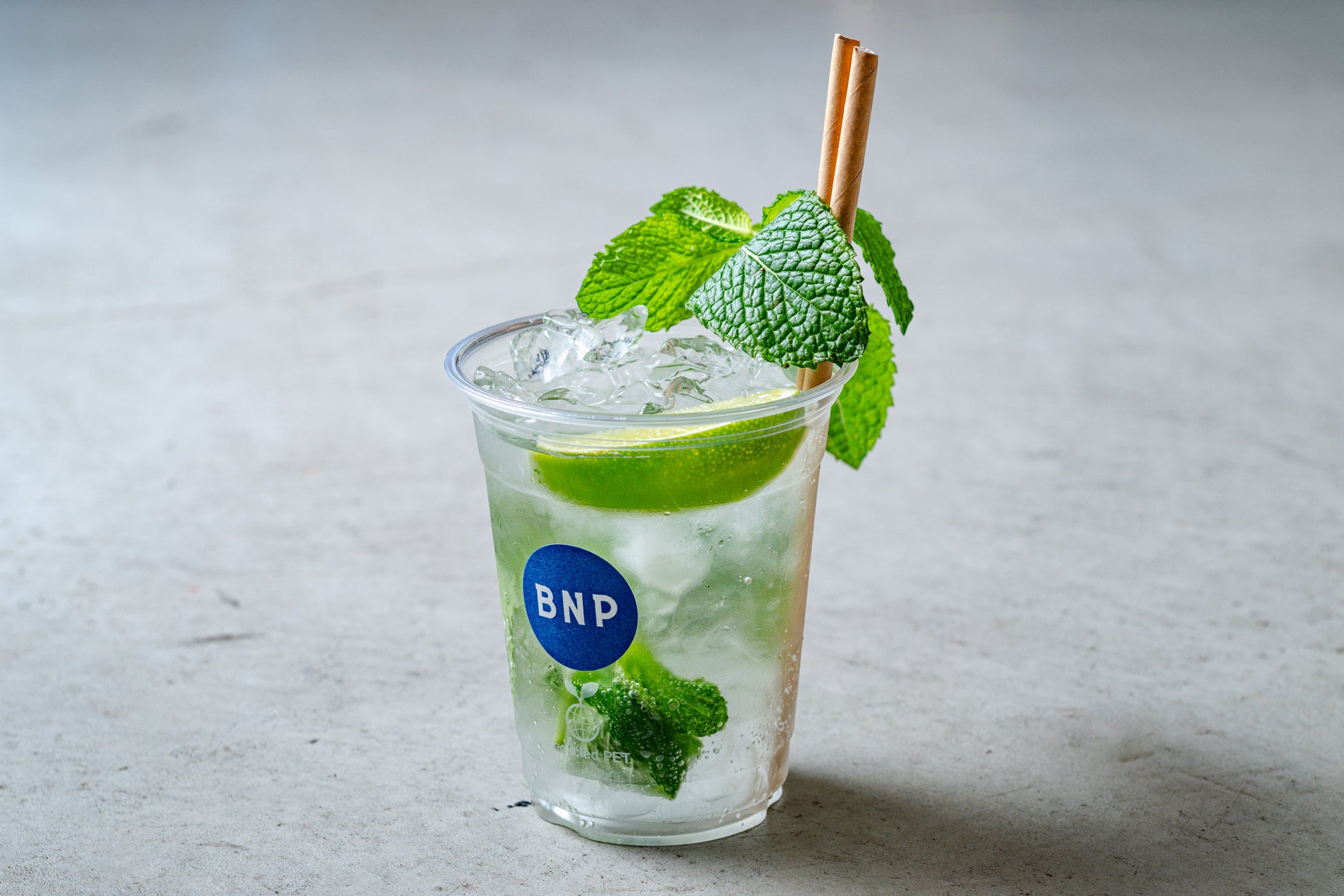 自社農園で栽培しているミントをたっぷりと使ったノンアルコールのモヒートです。さわやかな香りを映画のおともにお試しください。