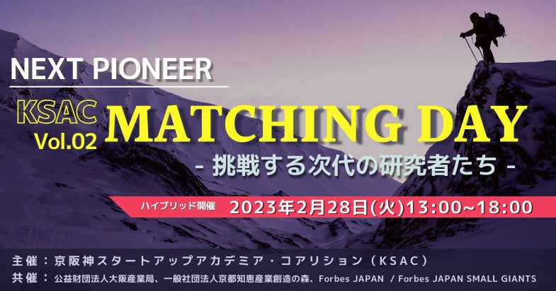 リンクタイズ株式会社が運営する『Forbes JAPAN』(代表取締役CEO 兼 Forbes JAPAN Founder::高野真)は、京阪神スタートアップアカデミ ア・コアリション(KSAC)と2023年2月28日(火)にイベント「NEXT PIONEER -挑戦する次代の研究者たち-KSAC MATCHING DAY Vol.02」を共催します。