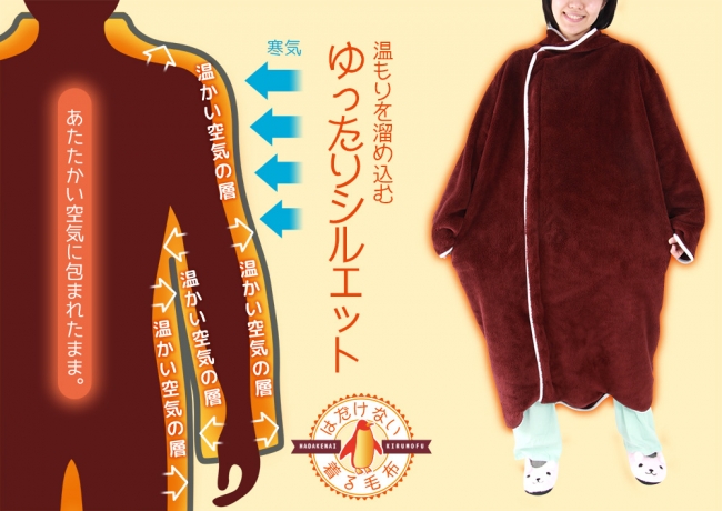 冬の必須アイテム着る毛布がより動きやすく、よりストレスフリーに進化しました。最大の特徴は、その名の通り「はだけない」こと。温かさを逃さないので、どんなときもあなたのそばに温かさがオトモします。